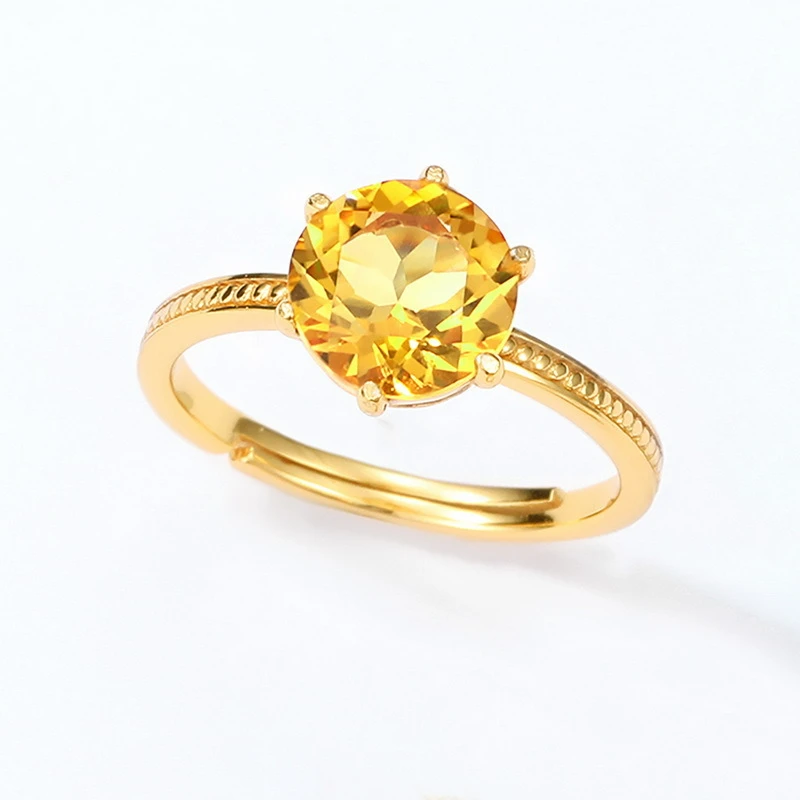 La bague citrine est un bijou qui reflète la grâce de la nature. Cette élégante bague est fabriquée en argent, ornée de motifs en or et dispose d’une conception ajustable pour la taille. La pierre centrale de la bague est une citrine synthétique.