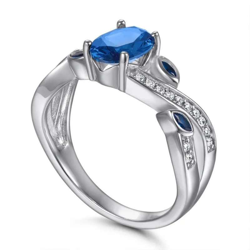 Le matériau en argent confère à la bague une élégance subtile, faisant de chaque instant un moment précieux. Bien que la pierre ne soit pas un vrai saphir, elle est une imitation habilement conçue, taillée dans une forme ovale pour apporter une touche distinctive. Les tons de bleu captivants de la pierre offrent une ambiance romantique, symbolisant l’amour éternel.