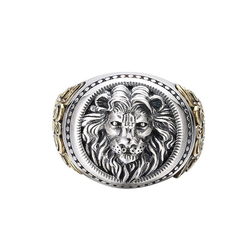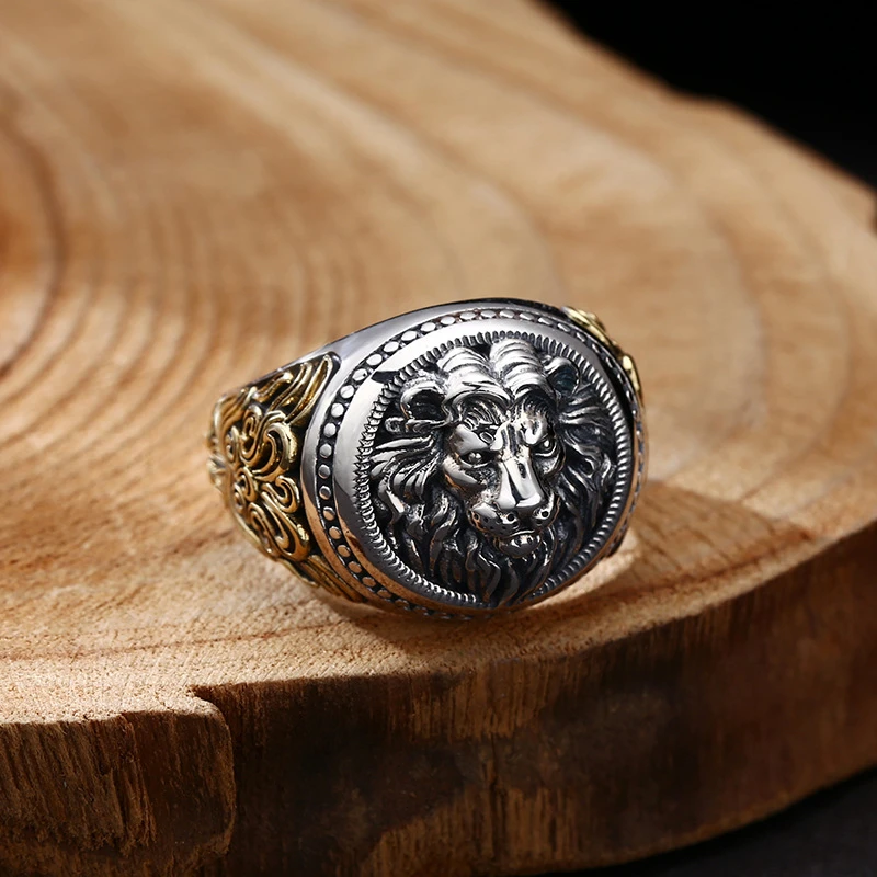 Élégance Sauvage : Bague Tête de Lion en Argent, Un Accessoire Puissant et Raffiné