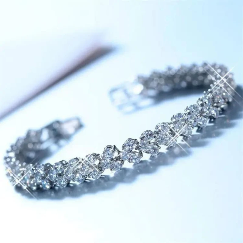 Le bracelet en argent pour femme allie élégance et luxe dans une création raffinée agrémentée de pierres de moissanite en diamant, offrant non seulement un design captivant, mais également une option séduisante à un prix abordable. Ce bracelet a été soigneusement conçu pour ajouter de l’élégance à vos moments spéciaux et compléter chaque tenue avec style.