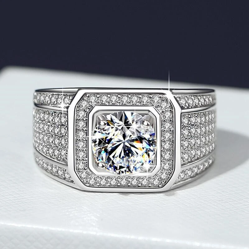 La chevalière homme en argent, alliant style et élégance, propose un accessoire exceptionnellement conçu pour les hommes. Cette bague chic attire l’attention grâce à sa matière en argent de haute qualité et à sa technologie exclusive de sertissage de diamants. La pierre principale de 2 carats, conçue avec une pierre de Mosan de haute qualité, ajoute une brillance et une valeur extraordinaires à la bague. Cette pierre spéciale offre une combinaison parfaite de raffinement et de luxe pour les hommes élégants.