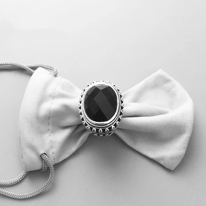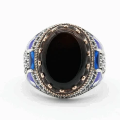 Son visage est orné d’une pierre d’onyx de forme ovale, conférant à la bague une apparence élégante et sophistiquée. La pierre d’onyx équilibre l’énergie et éloigne les énergies négatives, ajoutant ainsi une signification particulière à la bague. La couleur noire profonde de la pierre d’onyx symbolise la puissance et la raffinerie, offrant à celui qui la porte une influence positive au quotidien. Cette pierre n’est pas réelle, il s’agit d’une pierre synthétique qui ressemble à la vraie.