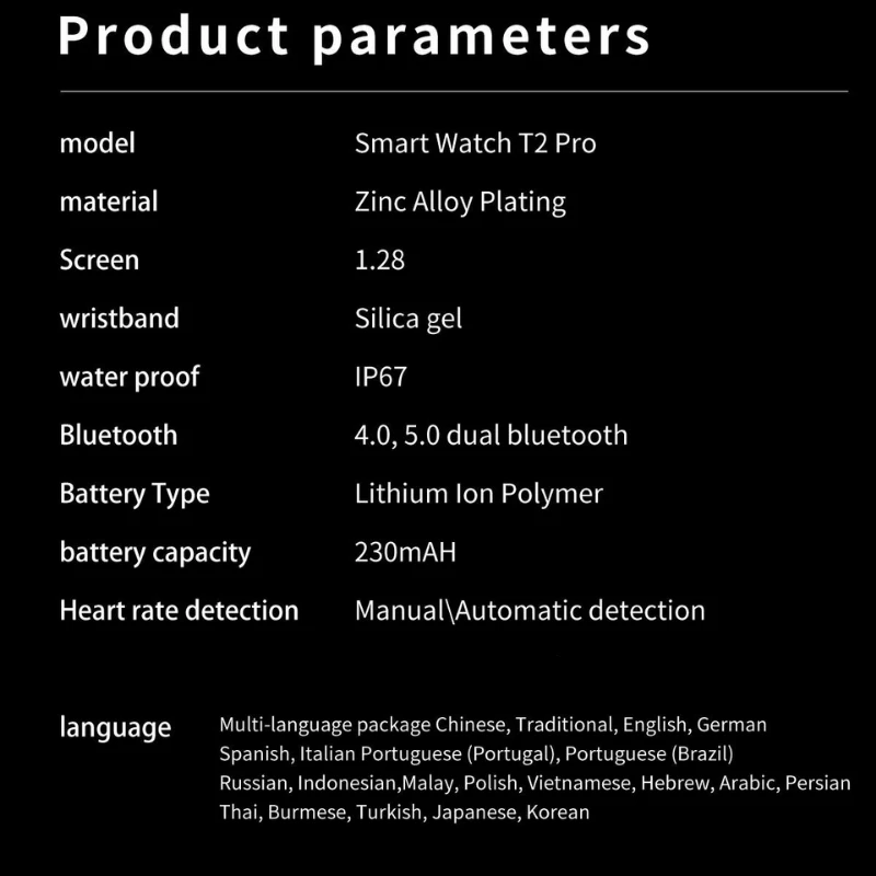 Fonctions : Étanchéité, photographie, surveillance de la fréquence cardiaque, mesure de la pression artérielle, appel Bluetooth, rappel intelligent, selfie à distance, surveillance du sommeil, détection de l’oxygène dans le sang, etc.