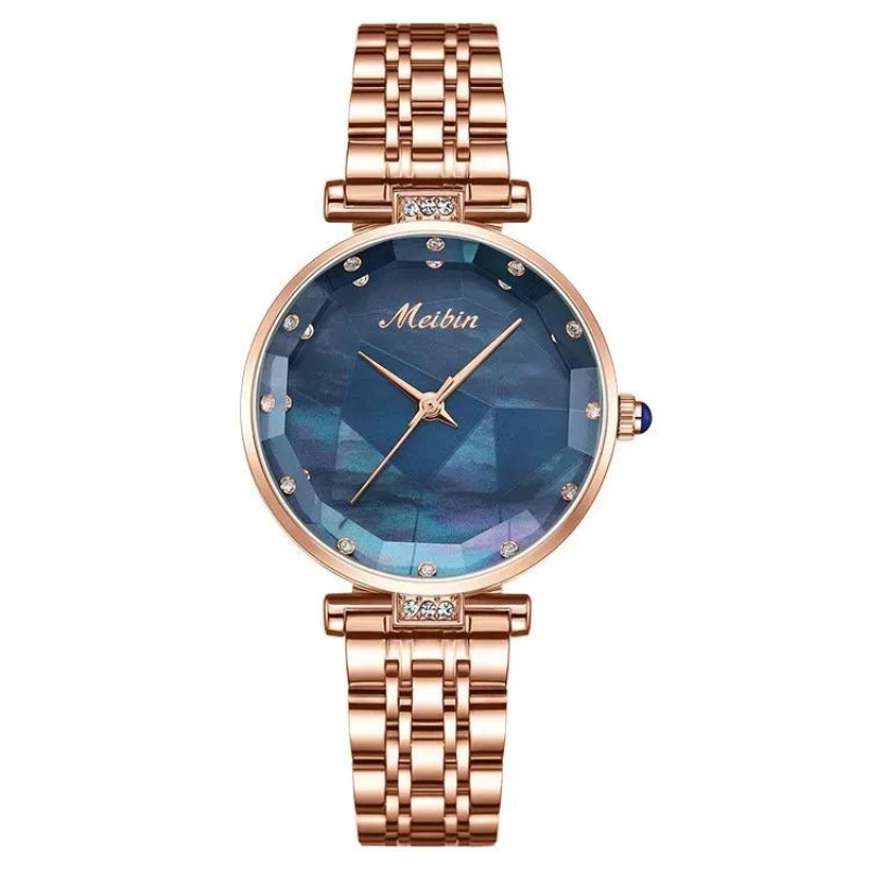 Une fusion parfaite d’élégance et de raffinement, la montre tendance pour femme se distingue par son bracelet en métal bronze et son cadran bleu éblouissant. Cette montre exceptionnelle offre une élégance unique avec les tons bronze utilisés dans les détails et les pierres de moissanite en diamant qui ornent le pourtour du cadran.