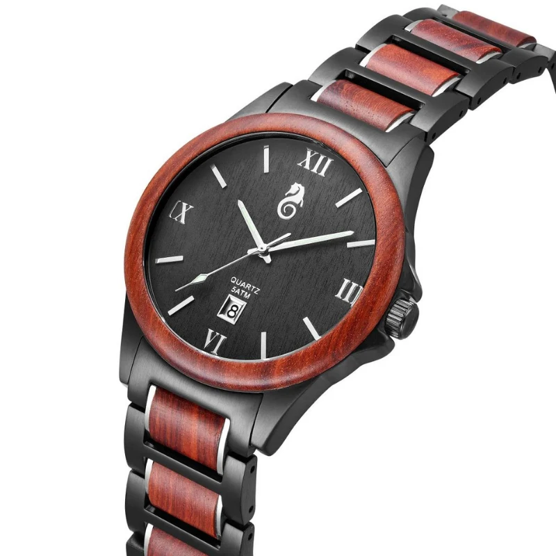 Style Bois de Santal avec la Montre Noire Homme
