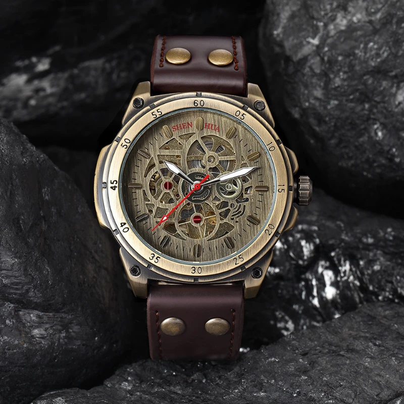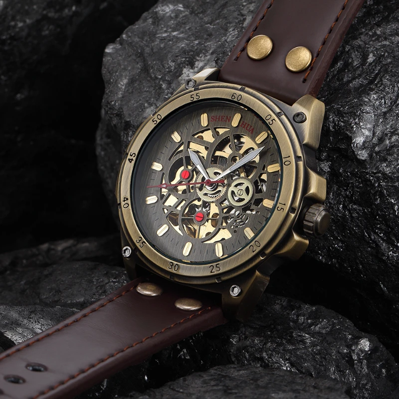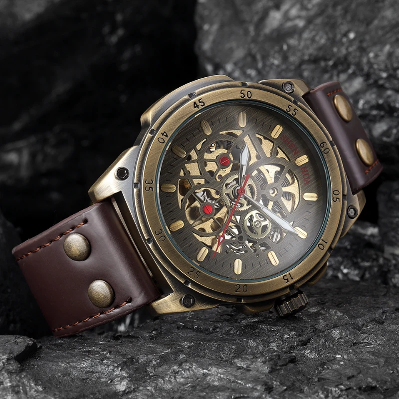 Le bracelet en cuir marron foncé de la montre vintage pour homme allie confort et élégance. La texture du cuir s’embellit à chaque utilisation, symbolisant la maturité croissante de la montre au fil du temps. Les détails raffinés de la montre rendent chaque moment inoubliable et offrent à son utilisateur la magie du passé.